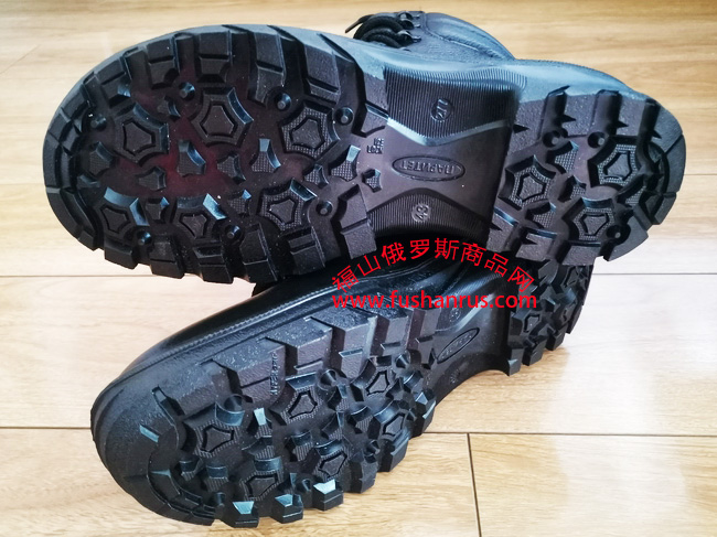 俄罗斯新款作战靴,该品采用优质牛皮加防刺优质橡胶鞋底,使用高科技一次成型热胶压胶工艺制造而成。更适合在高强度以及恶劣条件下使用,具有防水,防刺,耐刮蹭,经久耐用等特性,是前方作战以及野外等恶劣环境使用主装备之一。作战整体采用抗疲劳设计,总高度为27厘米,可以很好的保护脚踝在高强度运动情况下没有酸胀感,长时间穿大大增加了安全和舒适性。作战靴重量为1.93公斤,鞋带采用防滑快扣设计,在穿着时候能更好快速调节最佳最舒适状态。靴子根部以及顶部采用软皮设计,确保长时间穿着的舒适性以及更好的防尘沙效果。该品现在已经大规模列装,该作战靴是军迷或户外人士不错的选择。
