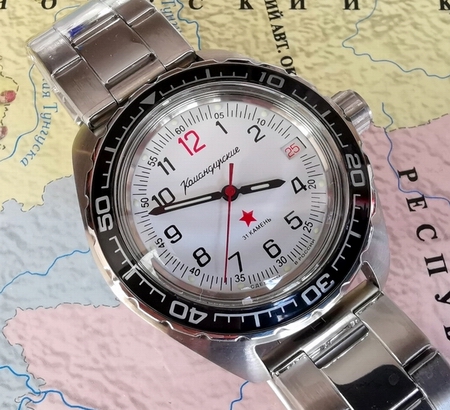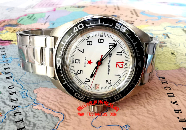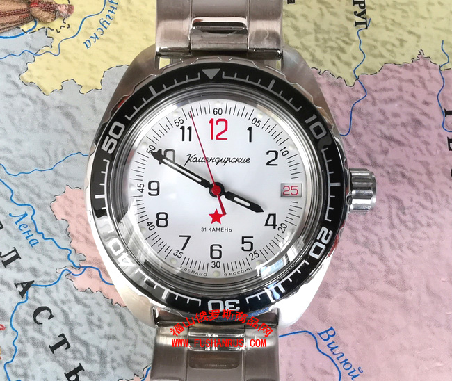 俄罗斯现役新两栖蛙人军表是配发给现役军官装备表之一,新两栖蛙人表采用304拉丝钢材质,带有原装全钢表带或呢绒或牛皮表带。手表为机械全自动机芯无需上发条.走时精确密封性好,并可承受200米深水的压力,可以佩戴洗澡以及游泳和潜水。